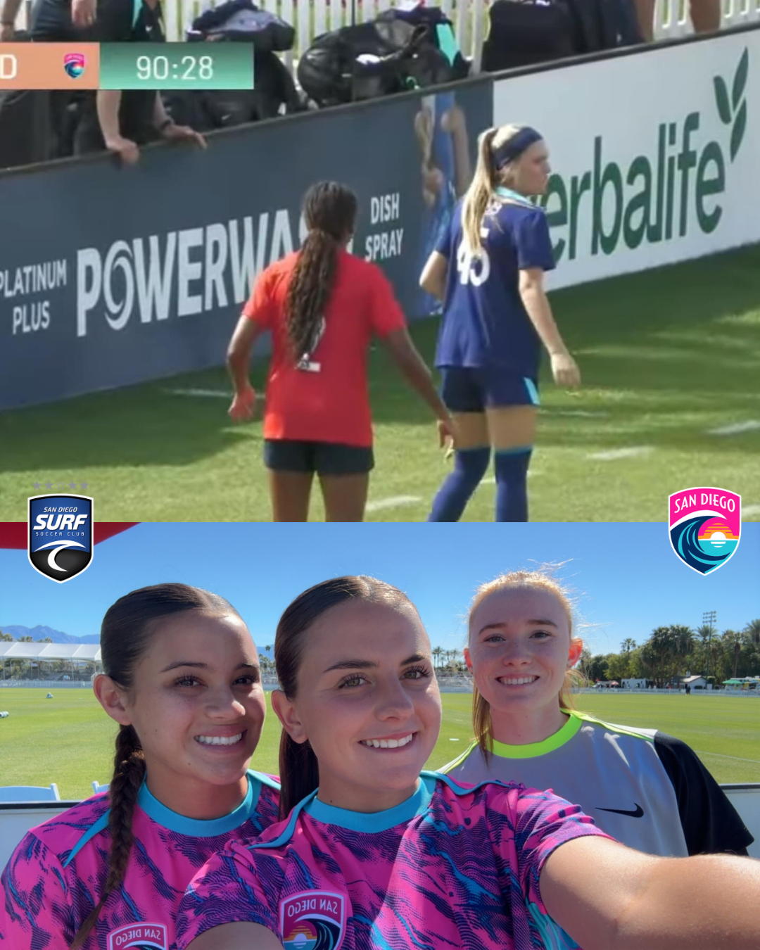 San Diego Surf Soccer Club is proud to announce that four players from the Girls 2009 ECNL team were invited to participate in the NWSL Coachella Valley Invitational held on February 21-22, 2026. Brooke Volpp, Lolly Mirhashemi, Addison Dean, and Kayleigh Cabigon were selected to train and compete alongside the San Diego Wave FC.
